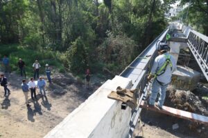 Detalló que la construcción de la sección de 17 metros lineales, es a base de nervaduras de estructuras metálicas de PTR 3 y 2” y sección de viga I, piezas que se unirán en sitio con un andador fabricado con losa de acero; estructura que será cubierta con metal despegable y recubierta con mortero cemento arena.